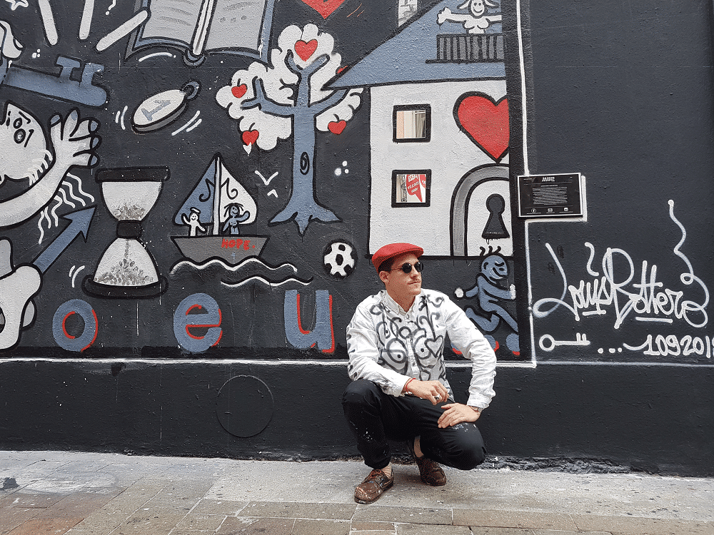 Louis Bottero devant Le Mur rue de la Moselle à Mulhouse